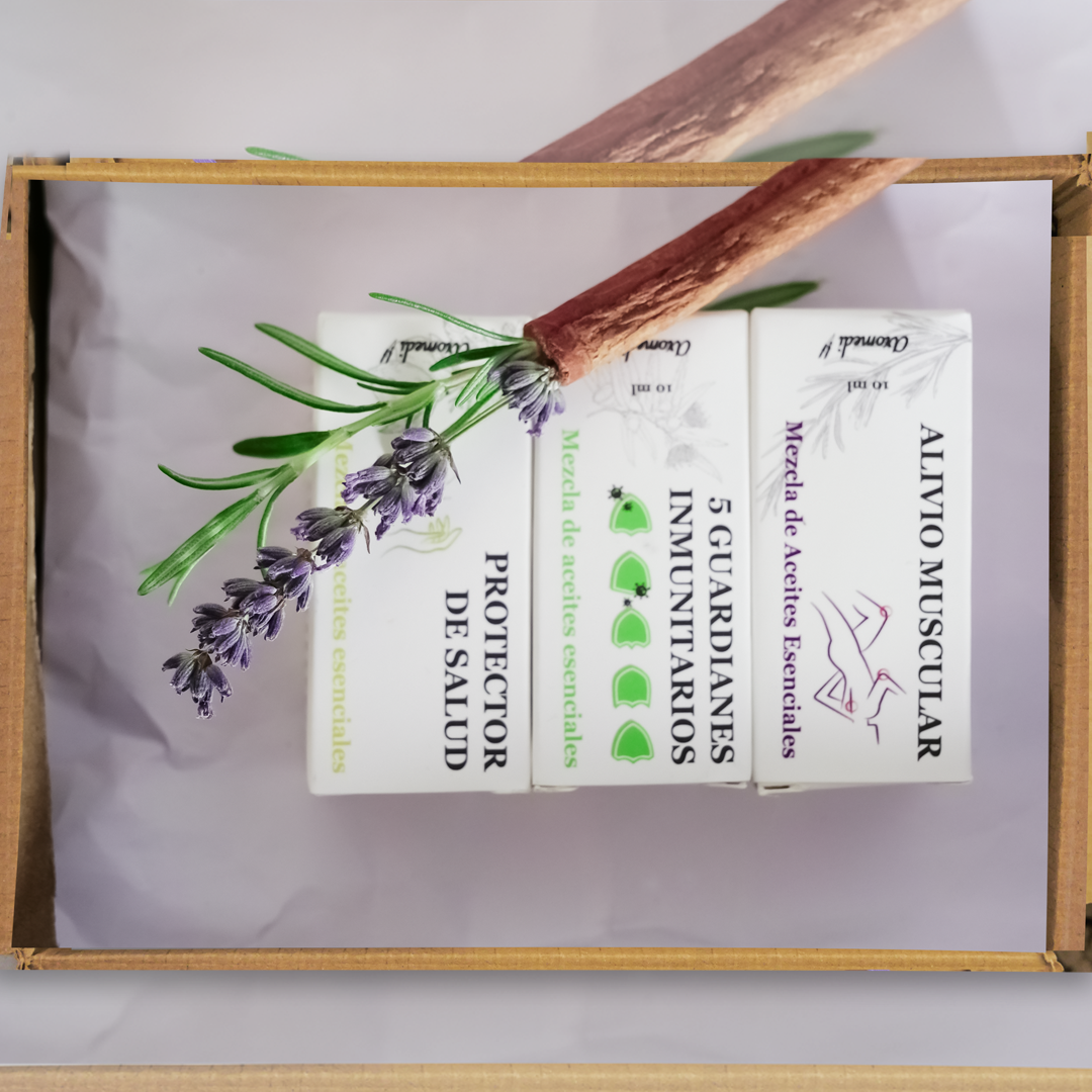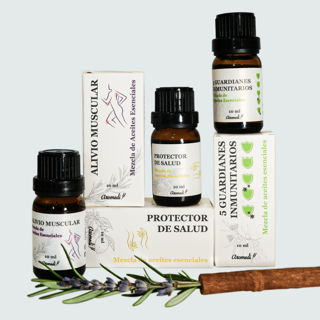Pack de 3 mezclas de Aceites esenciales Alivio muscular, Protector de salud y 5 guardianes inmunitarios. Ideal para fomentar un estado de salud óptimo.